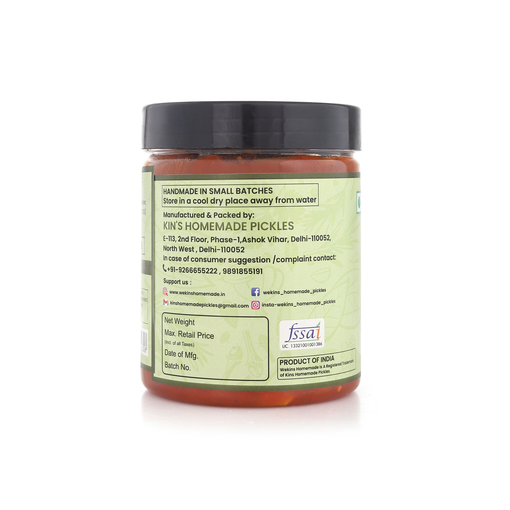 - Returns acceptable only in case of bad product or spillage with video proof at kinshomemadepickles@gmail.com